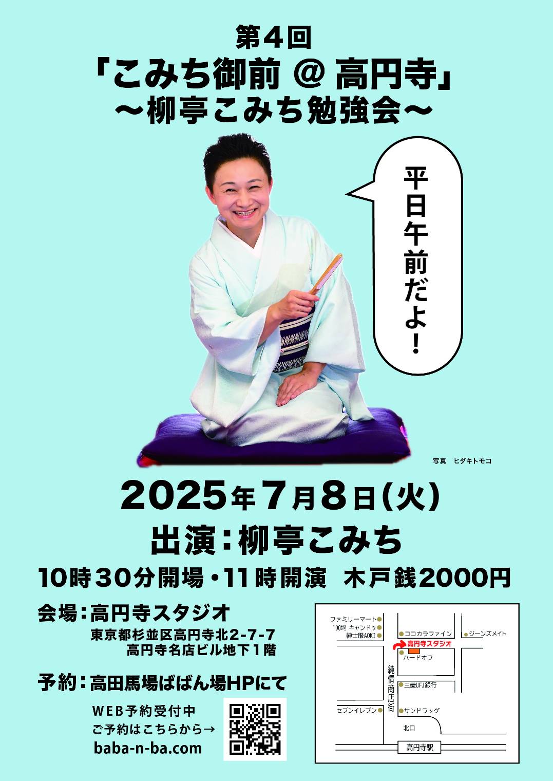 7/8(ç«) 柳亭ã“ã¿ã¡ã®å‹‰å¼·ä¼šã€Œã“ã¿ã¡å¾¡å‰ï¼ é«˜å††å¯ºã€ï¼ˆç¬¬4回)